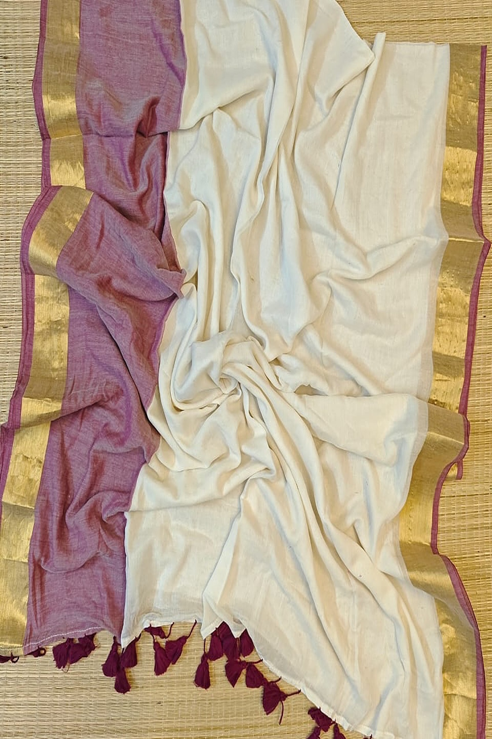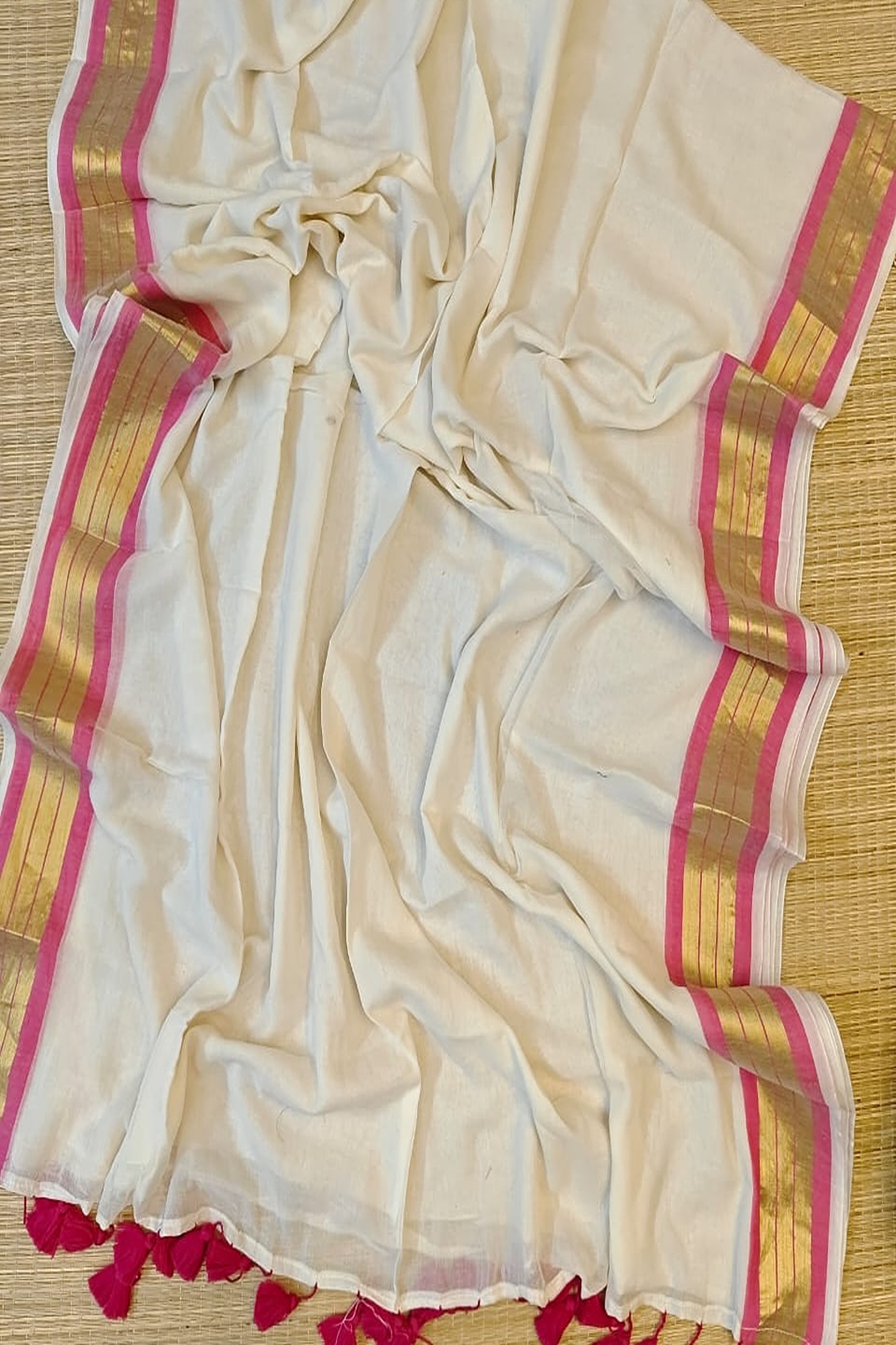 Mul Cotton White Saree